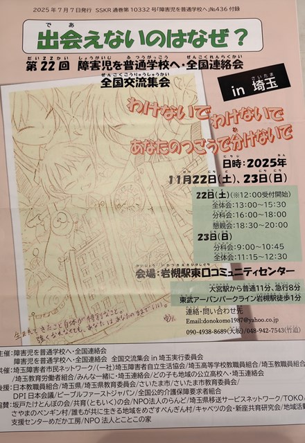 2025年11月22日(土)・23日(日) 第22回障害児を普通学校へ・全国連絡会 全国交流集会in埼玉