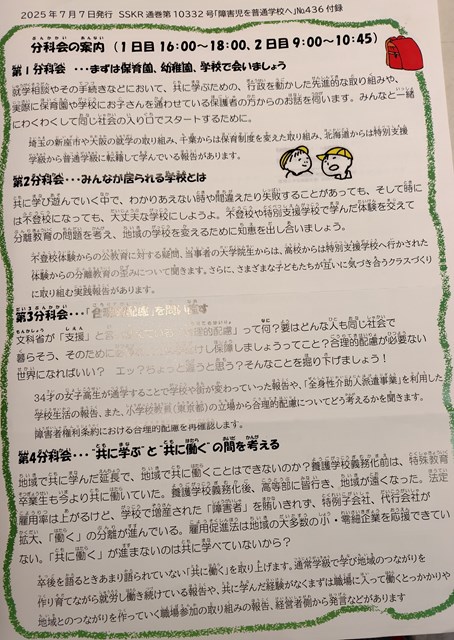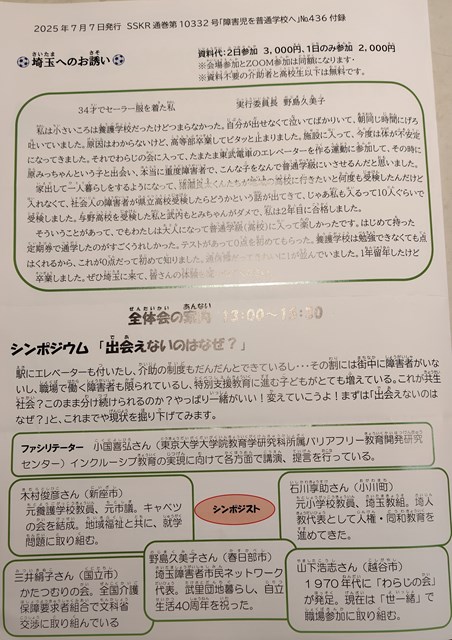 第22回 障害児を普通学校へ 全国交流集会 in埼玉 母と娘で報告します!