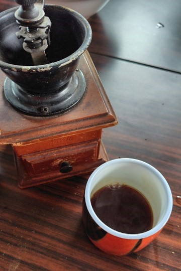 いざ試飲!浅煎り、中入り、深入りと、それぞれ異なる色合いと香り。