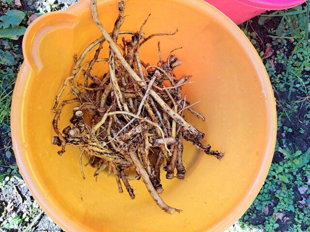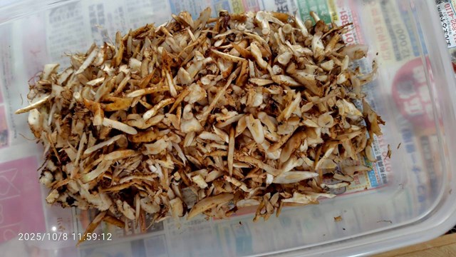 根が手でポキポキと折れるくらいに乾いたら、ミルにかけて