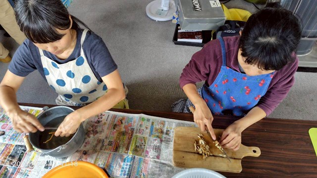 朝から畑で根っこを掘って、根気よく乾煎りしてようやくできあがったこの味をみんなで堪能できて、大満足でした。