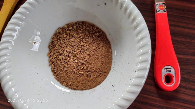 粉にし、さらに茶こしでふるいました。粗い根はお茶に、粉