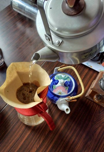 「あっ、ちゃんとコーヒーだ!!」酸味の香るコーヒーができあがりました。ホワイトチョコでコーティングされた、贅沢ルマンドとの相性抜群!
